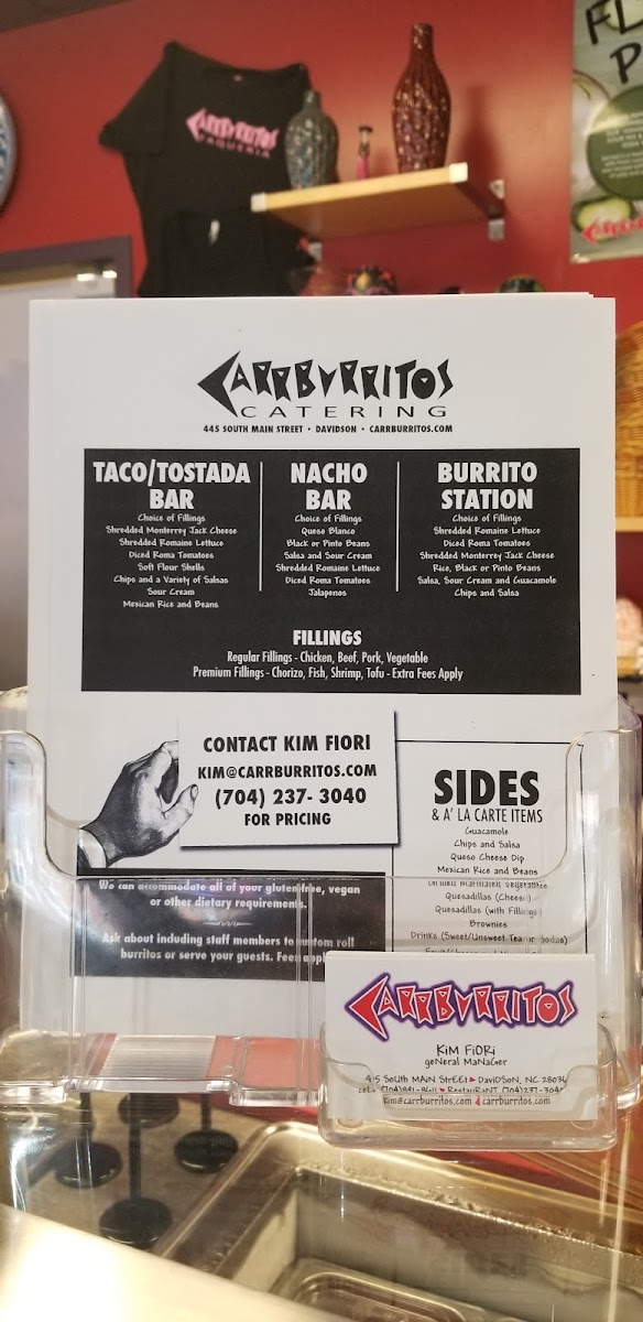 Welcome to Carrburritos in Davidson, a cherished dining destination located at 445 S Main St, Davidson, NC. This vibrant eatery is renowned for its family-friendly atmosphere and exceptional customer service, making it a perfect spot for gatherings. Dive into a menu that features fresh and flavorful dishes, capturing the essence of Mexican cuisine with a delightful American twist.